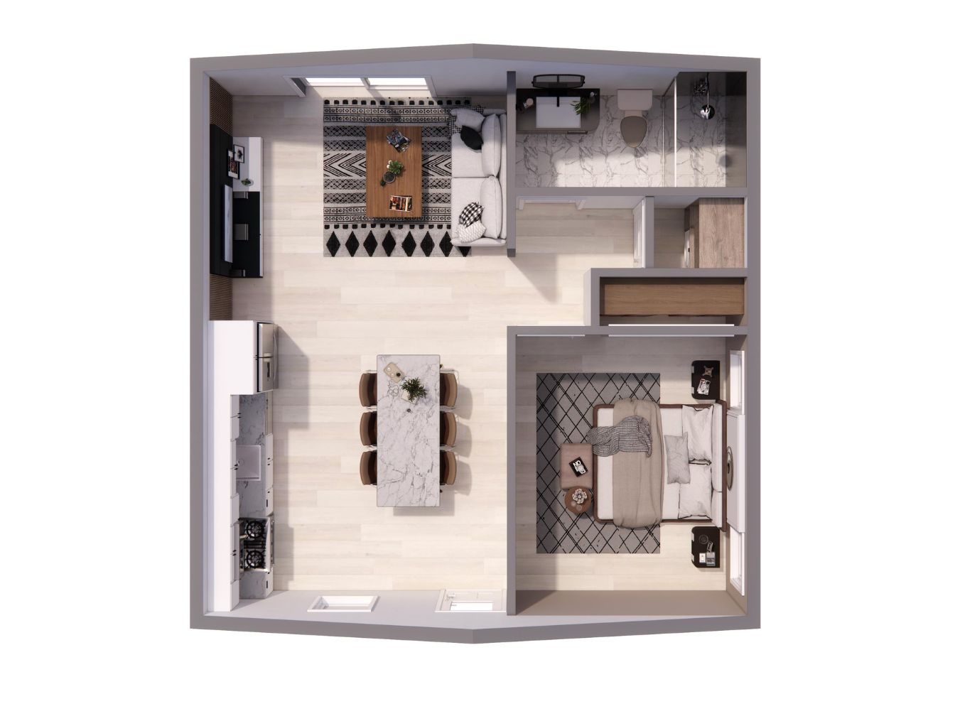 1 Bedroom with 1 Bathroom - 600 Square Foot